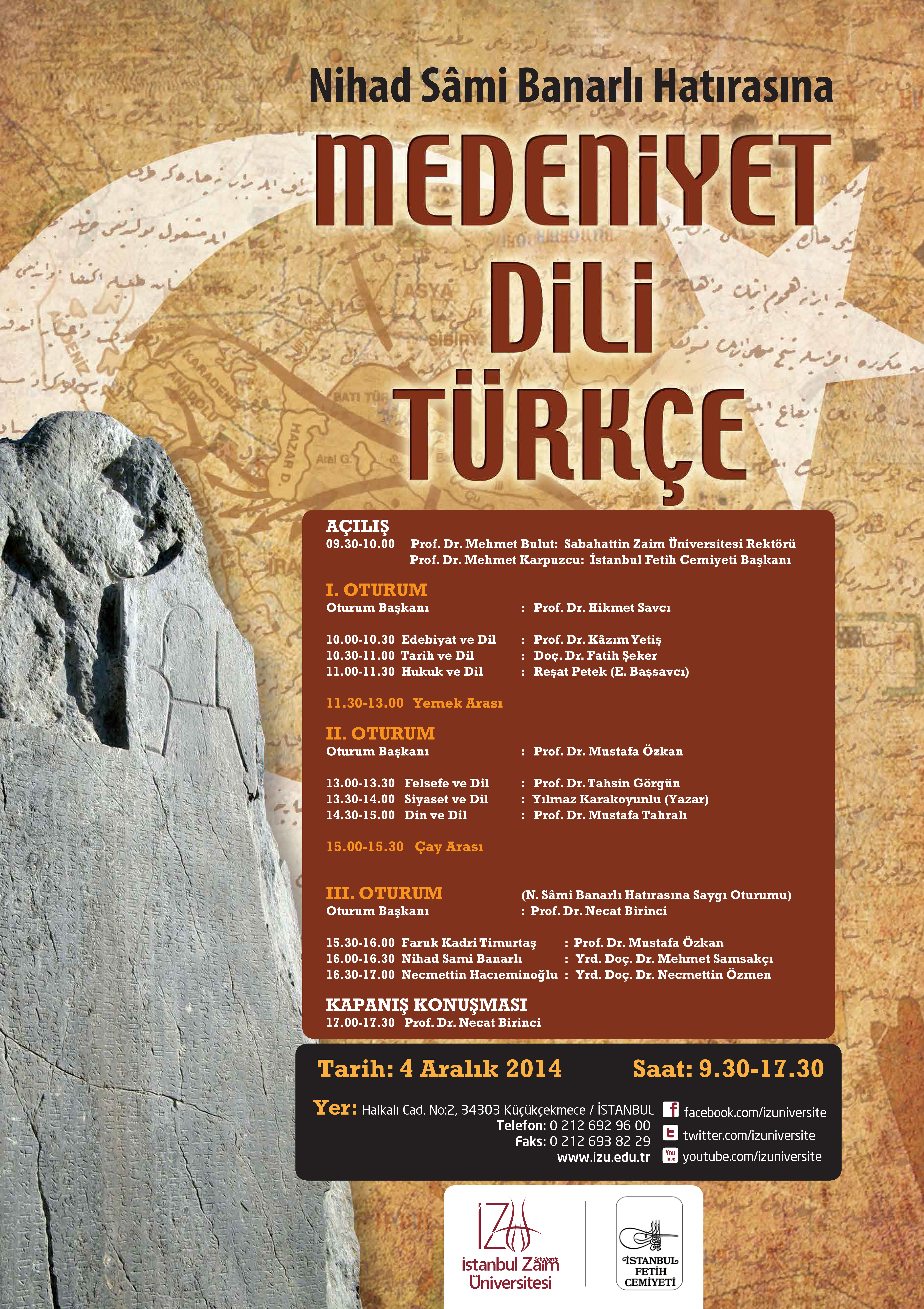 VEFATININ 40.YILINDA NİHAD SAMİ BANARLI SEMPOZYUMU, 18 KASIM 2014, İSTANBUL ÜNİVERSİTESİ EDEBİYAT FAKÜLTESİ, İSTANBUL